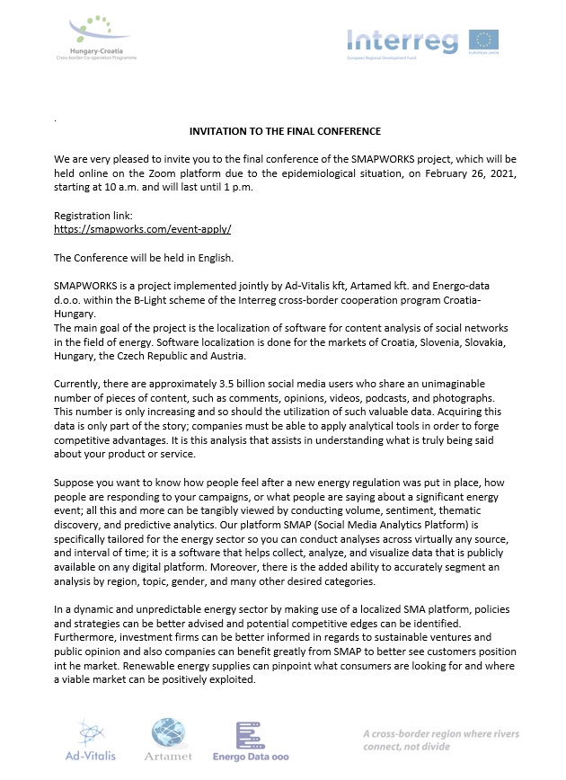 The final conference of Smapworks project, implemented within the B-LIGHT Scheme was held via an online communication platform on 26 February 2021.