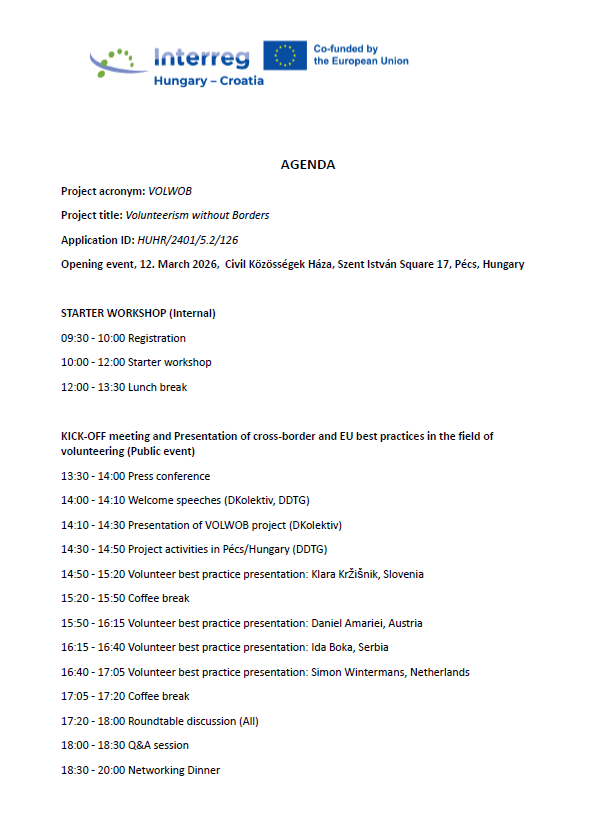 The VOLWOB - Volunteerism without Borders project partners are kicking off their project with an opening event on 12 March 2026, in Pécs, Hungary.